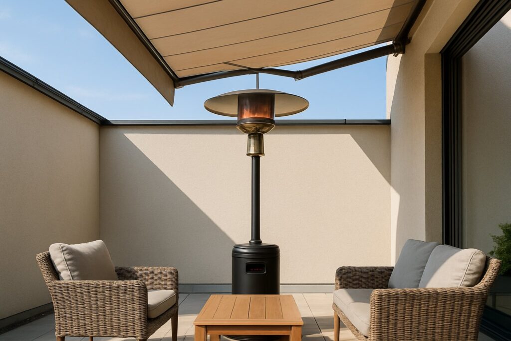 Fixed awnings with proper clearance can accommodate patio heaters, but ventilation becomes critical. At least 25% of the covered area must remain open for gas heater operation.